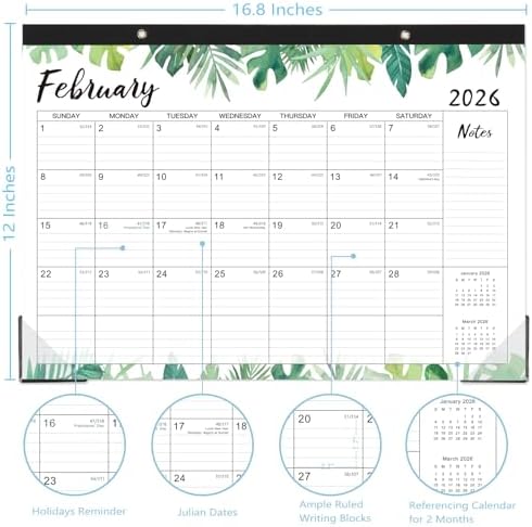 2026 Desk Calendar – Desk Calendar 2026, 12 Monthly Desk/Wall Calendar 2-in-1, 17″ x 12″, January 2026 – December 2026, Thick Paper with Corner Protectors, Large Ruled Blocks – Plants