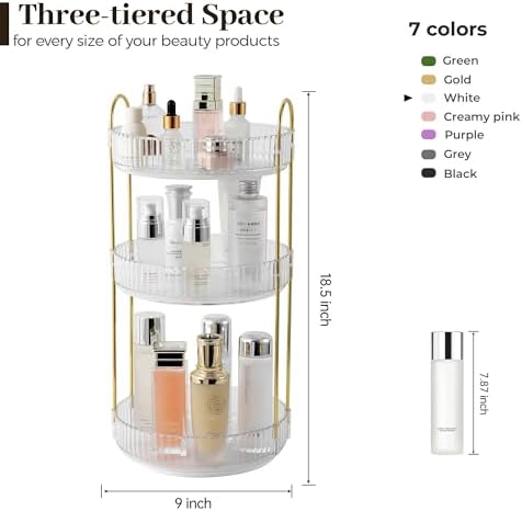 **Aveniee Rotating Makeup Organizer for Vanity – 3 Tier Perfume & Skincare Storage**